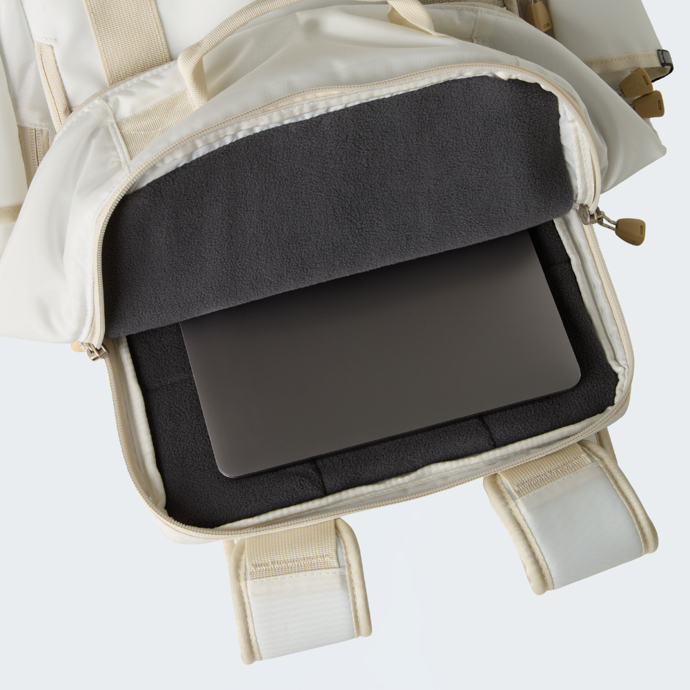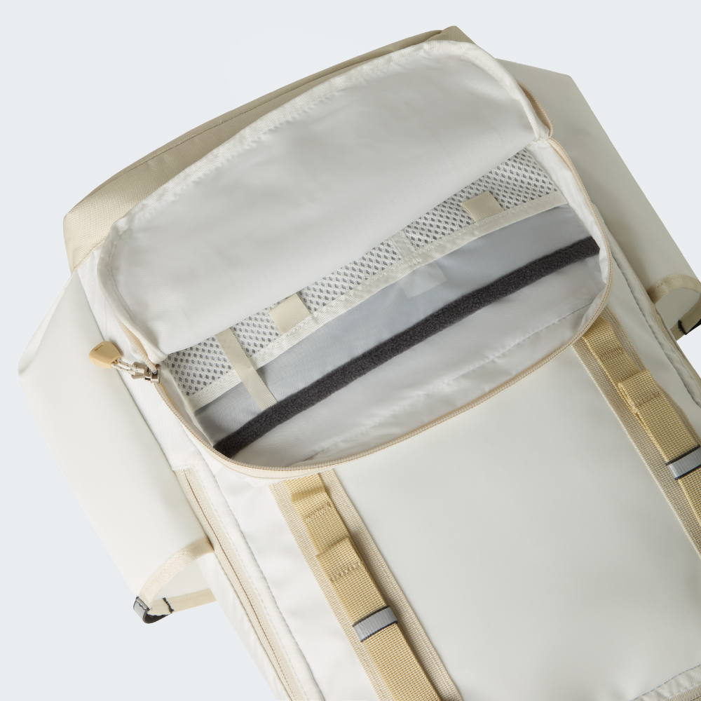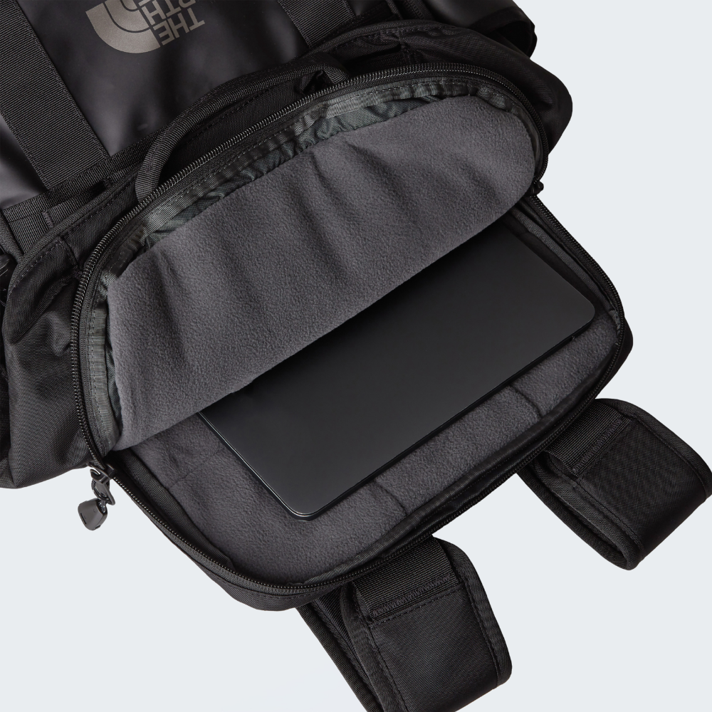 Meet the daypack version of our iconic Base Camp Duffel. It's made from the same tried and tested super-durable fabric. It even features two mesh pockets for organisation. But unlike the original, there's a padded back panel for comfort and a fleece-lined 16-inch laptop compartment to stop your electronics from being knocked about while you're on the move. We've added a fleece-lined external pocket for easy access to your essentials, too. And even handier, you can stow your jacket using the two webbing straps on the front. Even though it's roomy enough to handle everything you need for the day's adventures, it's light, roomy and built for days in the city or on campus.