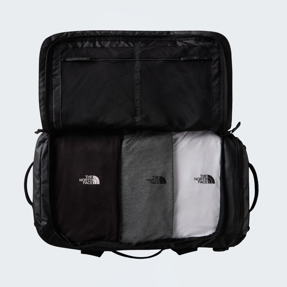 Style : NF0A52S3 Fabric - Body : 300D Recycled Polyester Tarpaulin with TPU Laminate Fabric - Boot : 840D Recycled Ballistic Nylon with Non-PFC Durable Water-Repellent (Non-PFC DWR) Finish Size : 62 Litres, Dimensions - 68,6 cm x 40,6 cm x 31,6 cm Roomy : Plenty of room for essentials and everyday belongings.