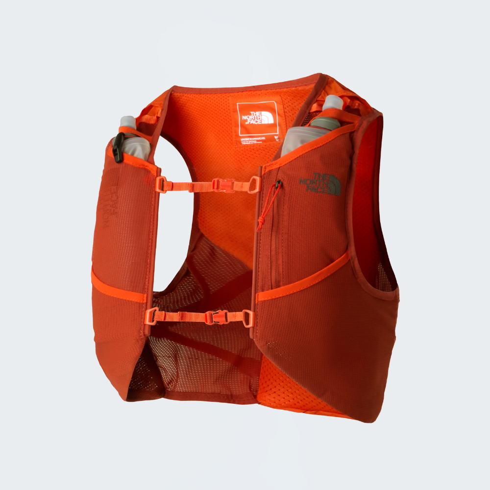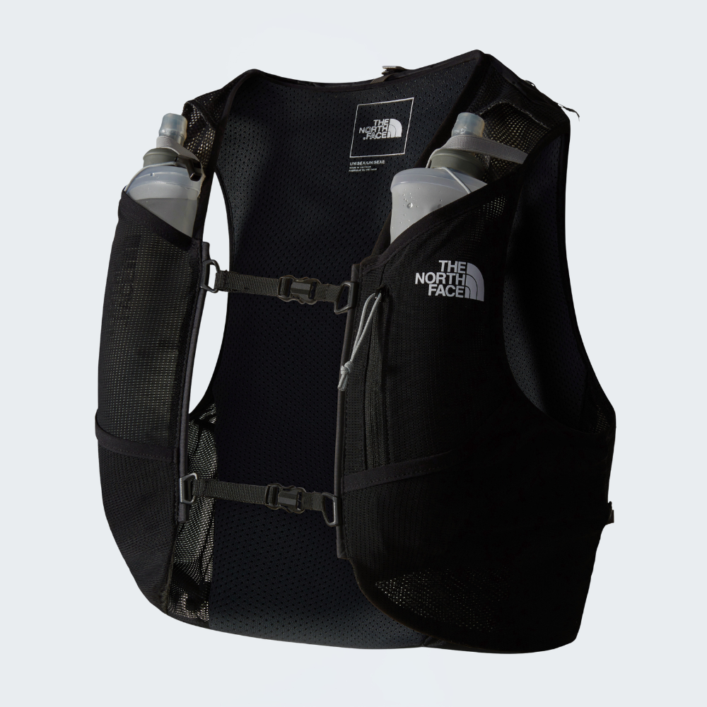 The Sunriser Run Vest 8 is one-part vest, one-part backpack. The 8-litre pack is designed to hold everything you need for a long day on the trail, while the bungee system can hold extra snacks, a water filter or an extra layer you can pull on when the temperature drops. There are five pockets in total consisting of two snack pockets, two water bottle pockets and a secure-zip phone pocket. And if that wasn't enough space, there's a trekking-pole carry system on the rear of the backpack for steep uphill sections and hilly terrain. Side compression provides a custom fit for your torso and minimises bouncing when you're running. Plus, with two 500-ml soft flasks included and a 2-litre bladder pocket with internal routing for a hose, you won't be short on hydration.