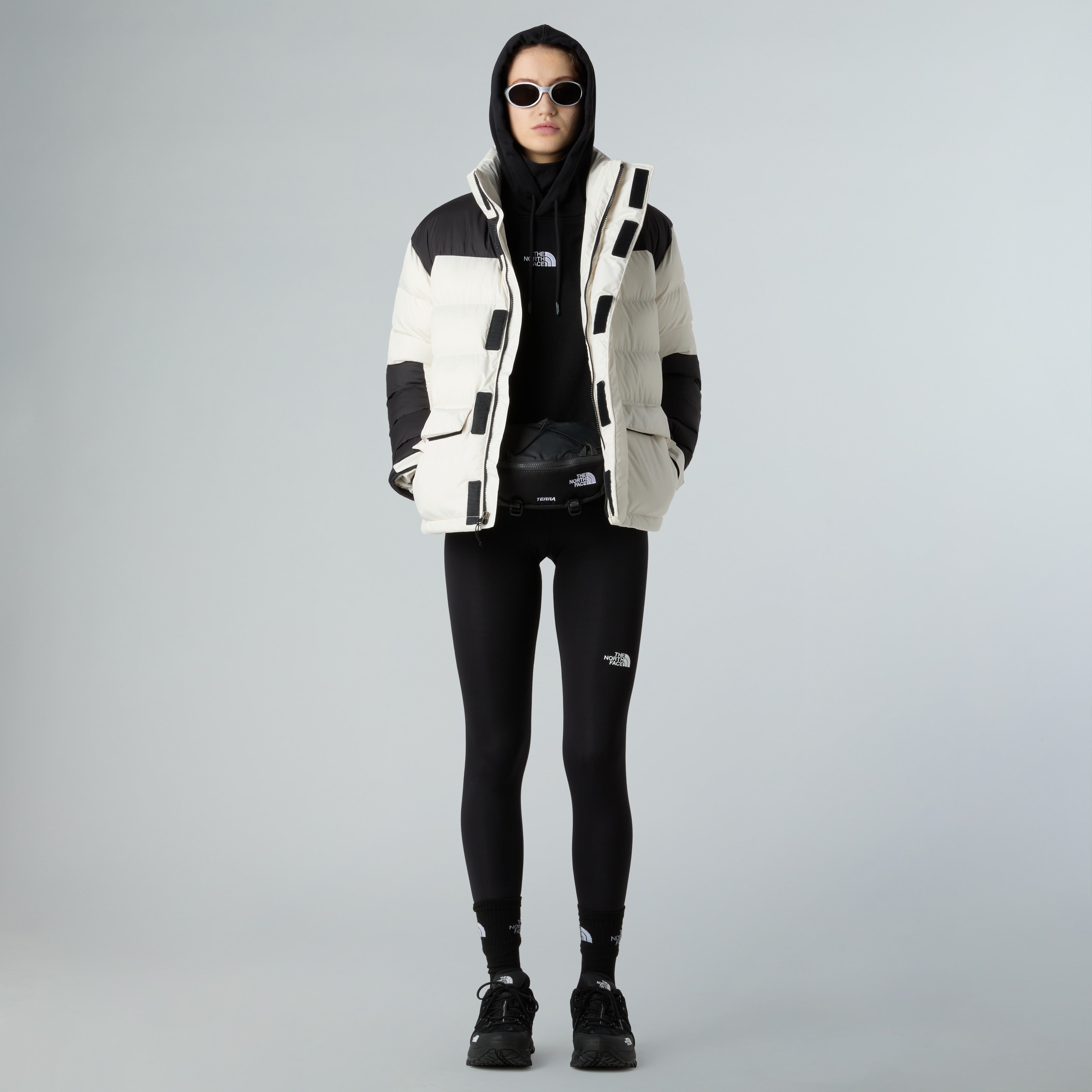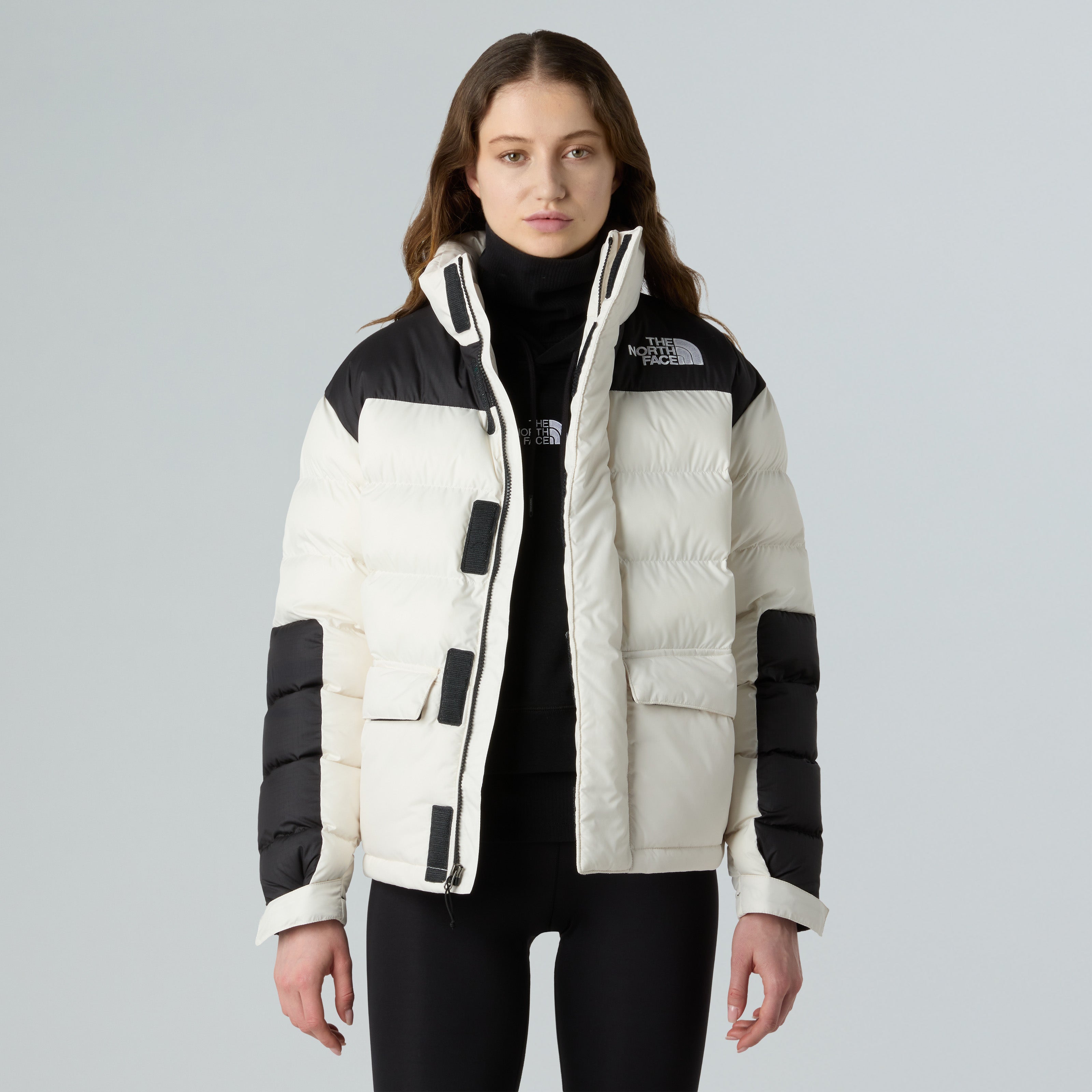 - The North Face® embroidery on the front and back $$ Curved front yoke