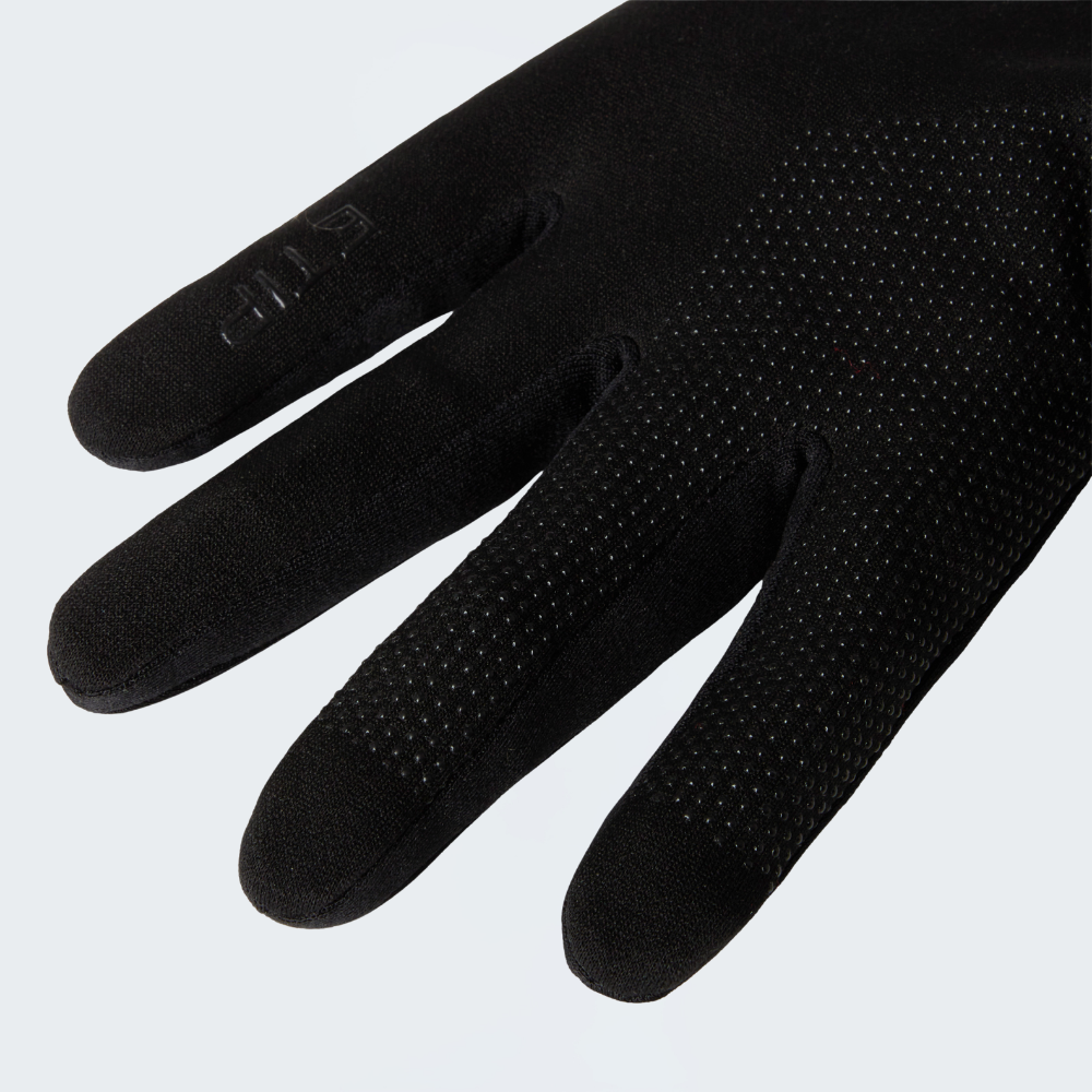 Gloves, they deliver welcome warmth when winter running, but they leave you a little restricted when it comes to using your phone or sports watch. Not the Etip™ Gloves. They have full touchscreen compatibility and a grippy silicone palm to minimise accidental phone dropping. They're made using stretchy recycled fleece that's warming, wicking and comfortable. And the Radiametric Articulation™ keeps your hands in a natural position, even when pushing hard up and downhill.